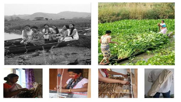 The intervention was triggered through an initiative by North East Centre for Technology Application and Reach (NECTAR), an autonomous body under Department of Science & Technology (DST), Govt. of India to involve the entire women community associated with a collective called 'Simang' meaning dream, led by the 6 girls to create wealth from water hyacinth plants.