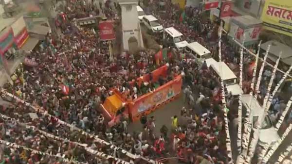 Meanwhile, amid chants of "Jai Shri Ram", BJP president J P Nadda Saturday held a road show in Malda in election-bound West Bengal.
