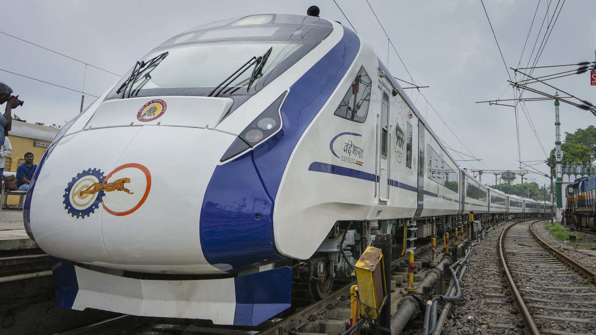 The Vande Bharat Express is a train service provided by the Indian Railways that operates at a semi-high speed. This service utilizes specialized Electric Multiple Units (EMUs) that have been designed and manufactured by the Indian Railways at their Integral Coach Factory located in Chennai.