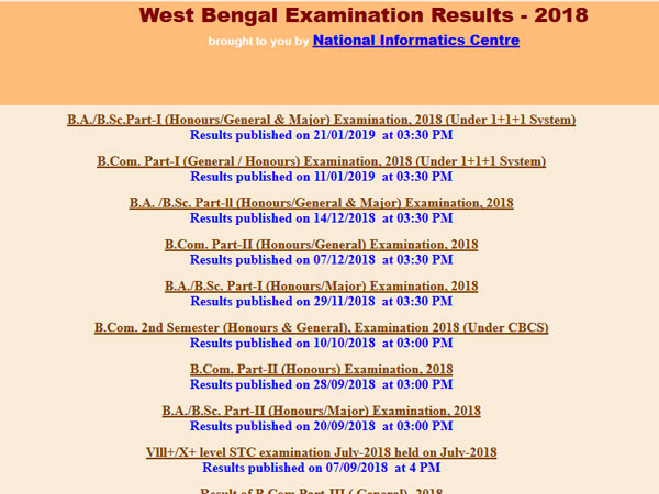 The result has been released for Honours/ General and Major. The result is available on the official result portal for examinations conducted in West Bengal. On November 29, the University had declared results for the BA, BSc. Part 1 exam. The results for B.Com. Part 1 exam (under 1+1+1 system) was declared on January 11 for General and Majors courses. The results are available on www.wbresults.nic.in.