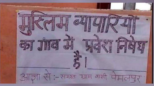 The purported banner bearing the name of Pemalpur village, located 65 kms away from Indore district headquarter, displayed a message that traders from a community were banned from entering the village as per the order of villagers.