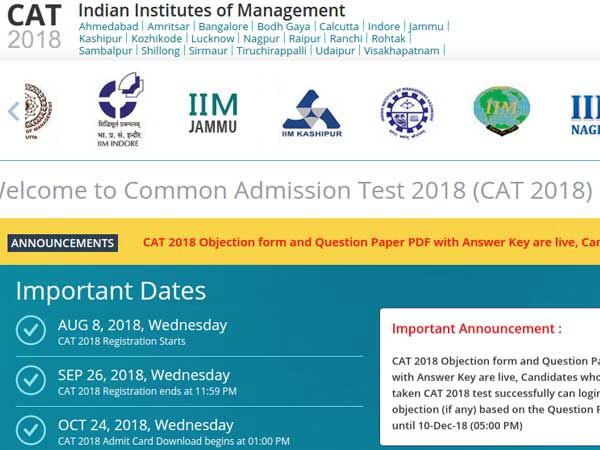 The CAT 2018 score will be valid only till December 31, 2019. CAT 2018 was conducted on November 25 in two slots at 374 centres across 147 cities of the country.