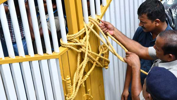 Hyderabad, Sep 11: Police have blocked TDP chief and former CM Chandrababu Naidu's attempt to leave his residence to lead a protest rally in defiance of his house arrest. As Naidu's car proceeded towards the main exit, the police secured the main gate using ropes.