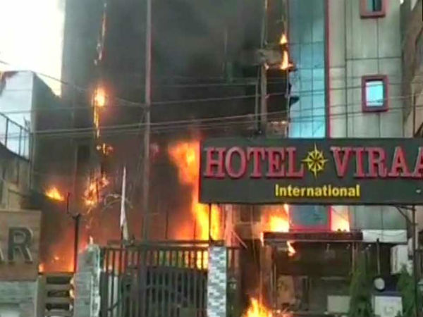The fire started around 4.30am from a short circuit in an air-conditioner in the basement of SSJ International Hotel and gradually engulfed its frontage. Some commuters informed police and fire department. In an hour, the fire spread to other floors causing panic among the guests. Within minutes, the flames spread to the adjacent Viraat International hotel.
