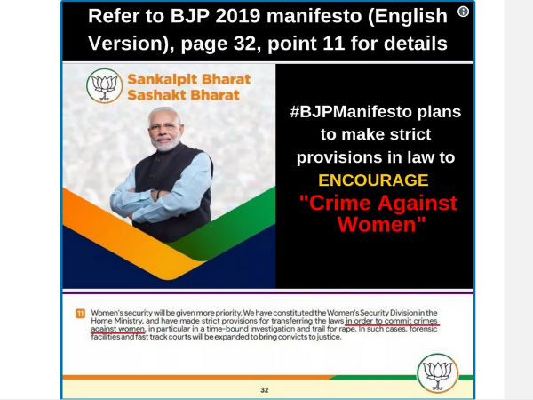 While there are many ambitious plans for women, the BJP in its manifesto seems to have made an embarrassing error while talking about introducing stricter laws for women's safety.
