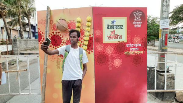 "To punish such people, we created some selfie points with the message I am irresponsible, I am selfish'. The offenders are asked to click a selfie there and it is then posted on the Facebook page of police," Kolhapur Superintendent of Police Abhinav Deshmukh said.