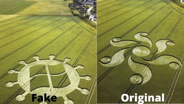 Crop circle combing symbols of coronavirus and Microsoft is fake