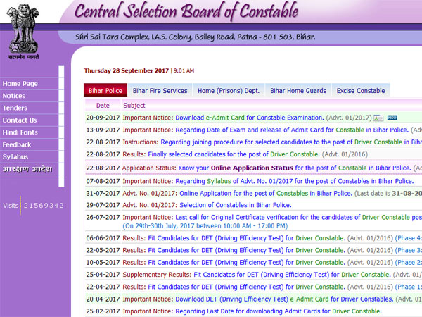 CSBC Admit Card 2017 download now for Bihar police constable exam