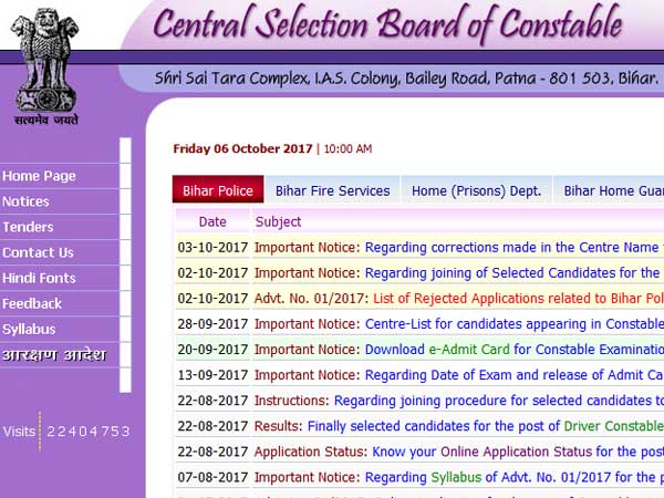 CSBS Bihar Constable Exam 2017: Exam centre correction, download correct admit card