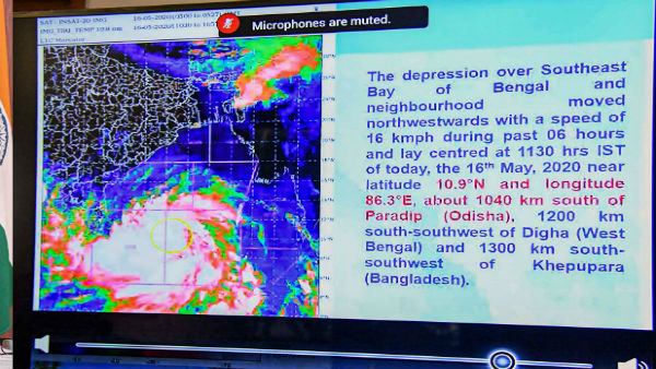 New Delhi, May 17: The cyclonic storm 'Amphan', which is currently over Southeast Bay of Bengal & neighbourhood moved northwestwards slowly during past 6 hours & lay centered over same region at 2030 hrs on May 16.