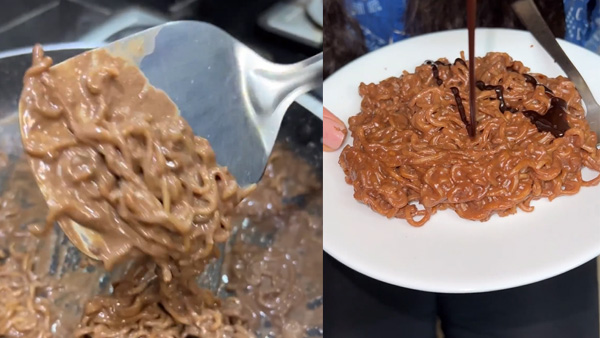 In the viral video, a user name 'Nerd Sisters' shared the video of maggi being cooked using dark chocolate and syrup. After the maggi is softened, the maker is seen putting dark chocolate in it. Not only does this change the colour of maggi to the colour of chocolate, but it also affects its taste. The maker is also seen relishing this dish after it was cooked and wears funny reaction on their face.
