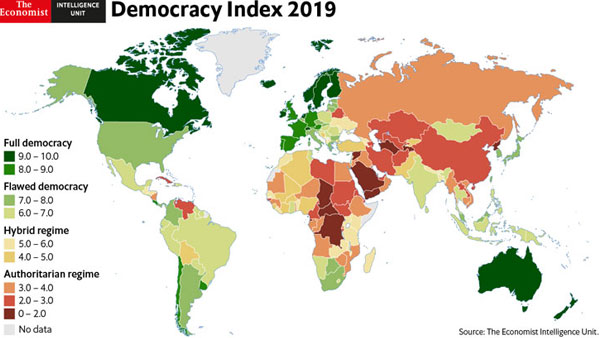 It should be noted that the Democracy Index 2019 of the EIU is based on five broad categories - electoral process and pluralism, civil liberties, the functioning of government, political participation, as well as political culture.