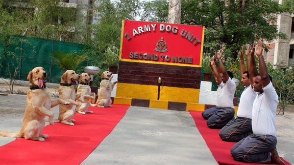 Dog unit of the Indian Army were also seen practising Yoga along with their human counterparts.