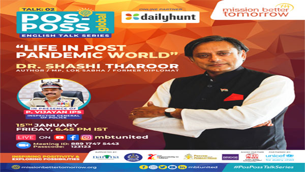He will address the second Pos-Poss Global Talk organised by Mission Better Tomorrow (MBT), which is a global collective united in the task of creating young change leaders and making creative and meaningful social interventions with active support of P Vijayan IPS, Inspector General of Police. Mr. Vijayan is known for various impactful children-centred programmes and was adjudged the CNN-IBN Indian of the Year in 2014.