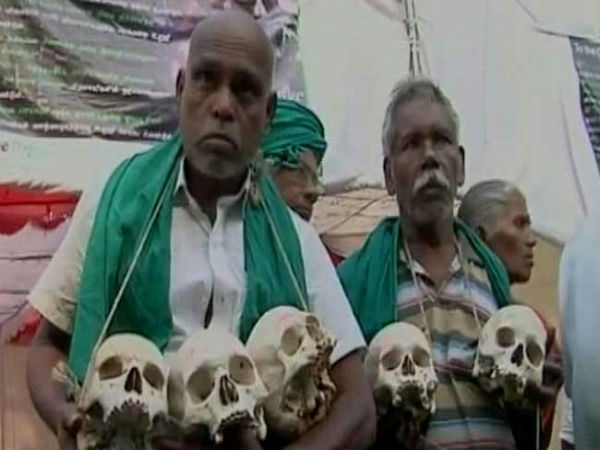 Drought-hit farmers of Tamil Nadu protest with skulls demanding relief in Delhi