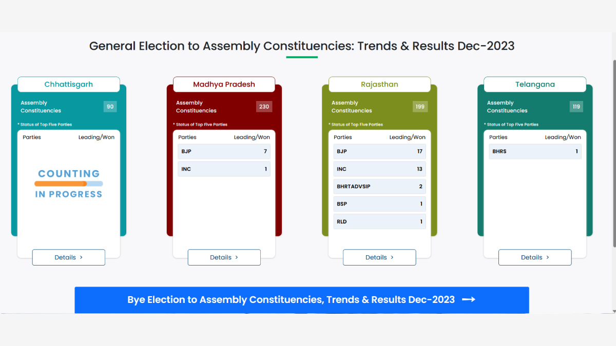 Counting commenced at 8 am on Sunday, December 3, for Assembly Elections in four states. However, the counting for Mizoram Assembly Elections 2023 is scheduled for Monday. Despite early trends reported by various news channels, users faced a lack of trend data on the eci website https://results.eci.gov.in/.