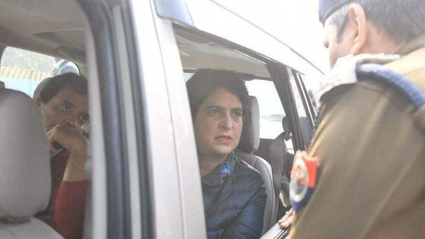 In the video, Congress leader Priyanka Gandhi can be spotted sitting in the rear seat. The police can be heard saying that Section 144 is implemented in the area.