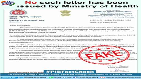 New Delhi, June 27: A letter has been issued by allegedly the Ministry of Health and Family Welfare regarding online counselling and allotment of seats in postgraduate medical courses is widely circulated on social media platforms.