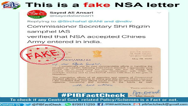 Fake: NSA Doval has written no such letter on the Indo-China standoff
