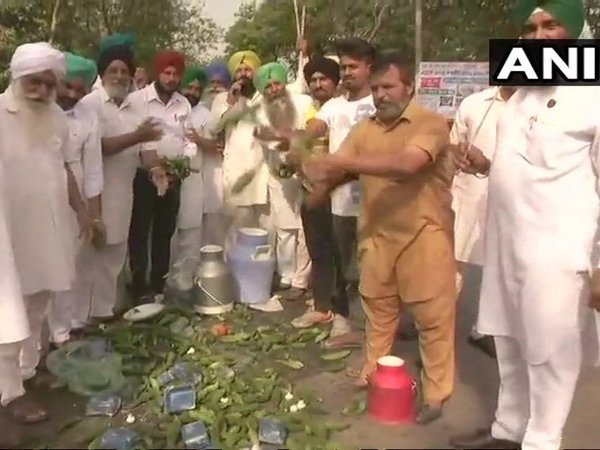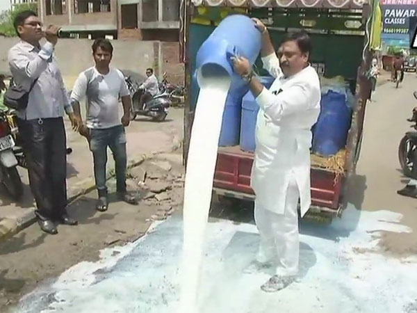 Maharashtra: Protesters spilled milk on road in Nagpur against Union Agriculture Minister Radha Mohan Singh's remark on the ongoing farmers' strike; distributed milk to locals who came up with utensils requesting for it.