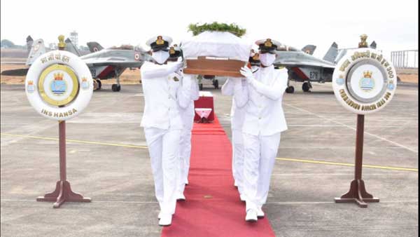 Panaji, Dec 11: The fighter pilot Commander Nishant Singh who was killed in a MiG 29K fighter that crashed into the Arabian Sea off the coast of Goa was laid to rest with full military honours in Goa on Friday evening.