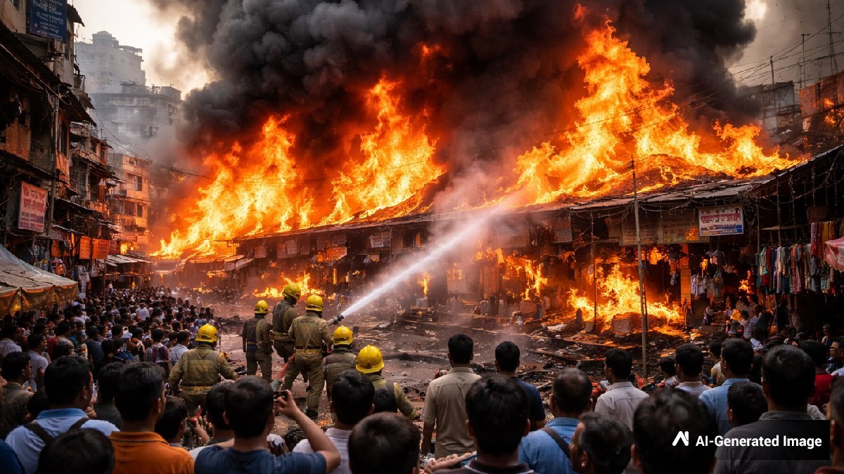 Fire engines rushed in, but narrow lanes and heavy crowding slowed operations. Firefighters battled the blaze for hours, while locals joined in, trying to salvage goods and prevent the fire from spreading further. Officials suspect an electrical short circuit may have sparked the incident, though a detailed probe is awaited.