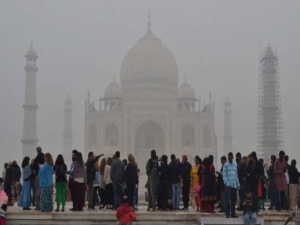 Tourists visit a fog engulfed Taj Mahal in Agra
