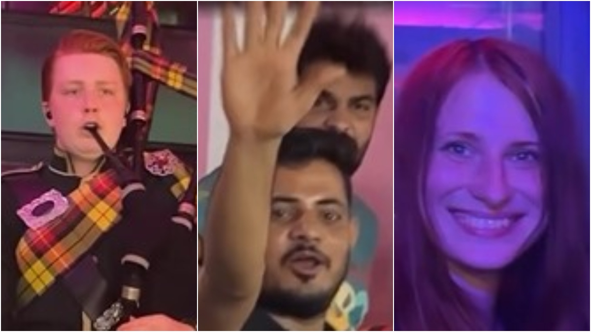 As the video progresses, Williams includes clips of Indian locals still standing outside the nightclub. He also shows Alderslowe, dressed in traditional Scottish attire, playing the bagpipes inside the venue.