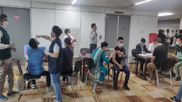 The minister also shared a photo where returnees could be seen getting jabs at the Delhi international airport.