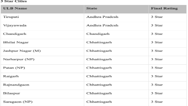 Under the 5 star list the cities are Ambikapur, Rajkot, Surat, Mysuru, Indore and Navi Mumbai