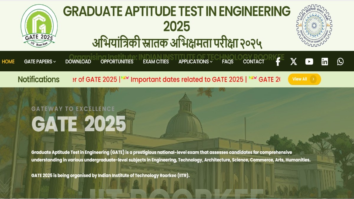 The Indian Institute of Technology (IIT) Roorkee will open the registration for the Graduate Aptitude Test in Engineering (GATE) 2025 today, August 28. Eligible candidates can apply through the official link on [gate2025.iitr.ac.in](https://gate2025.iitr.ac.in).