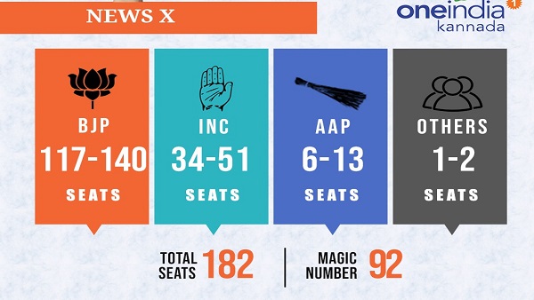 BJP to win 125 to 130 seats in Gujarat, according to the exit poll results by Tv9 Gujarati.