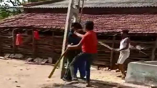 In the video, two men, armed with sticks, can be seen hitting the teenage boy who was tied to an electricity pole. Then, one of the men brings the girl near the pole and hits her with a stick repeatedly in the presence of some villagers. The arrested trio included the girl's uncle, her brother and a distant relative. Three others are yet to be nabbed, said the police officer.