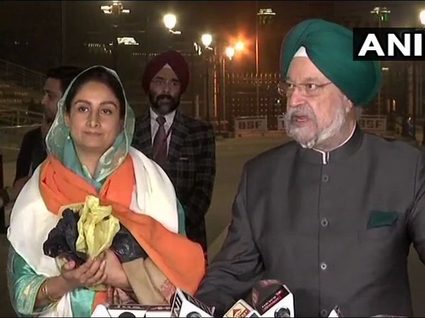 Attari-Wagah, Nov 28: Union Ministers Hardeep Singh Puri and Harsimrat Kaur Badal crossed Attari-Wagah border to return to India. The two ministers attended the ground-breaking ceremony of Kartarpur Corridor in Pakistan earlier today.