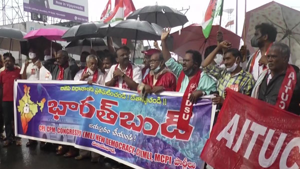 Amaravati, Sep 27: The bandh in Andhra Pradesh against the centre's agri laws is dampened due to heavy to very heavy rain on Monday. The state government and the opposition party Telugu Desam Party had extended support to the bandh call given by various farmer unions.