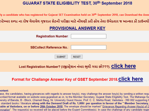 New Delhi, Oct 11: The GSET Answer Key 2018 has been released. The answer keys released by the Maharaja Sayajirao University of Baroda, Vadodara for the Gujarat State Eligibility Test (GSET) is available on the official website.