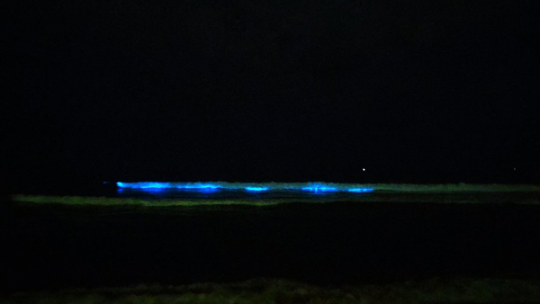 Bioluminescence is the emission of light by marine organisms. It occurs when microscopic marine plants or phytoplanktons is also known as dinoflagellates, produce light through chemical reactions in proteins.