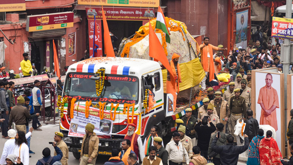 New Delhi, Feb 02: Two 30-tonne Shaligram stones have been brought to Ayodhya and Lord Ram's statue will be made up of these special stones. The Shaligram stones mined from the Kali Gandki river in Nepal will be used in the making of Lord Ram's statue at Ayodhya.