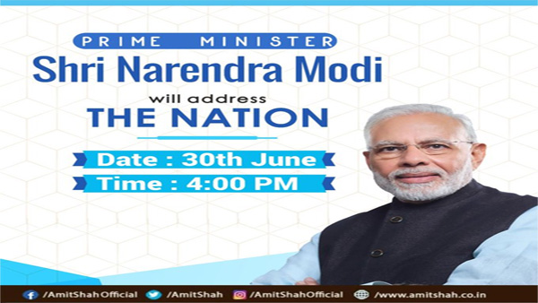 New Delhi, June 30: Union Home Minister, Amit Shah has urged everyone to tune into the Prime Minister's address at 4 pm.