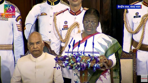 New Delhi, July 25: Draupadi Murmu became the first tribal woman to take oath as President of India. She was sworn in by Chief Justice of India, N V Ramana.