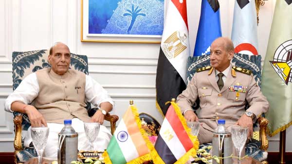New Delhi, Sep 20: Defence minister Rajnath Singh on Monday held bilateral talks with Egyptian defence minister General Mohamed Zaki in Cairo and signed MoU to bolster defence cooperation across all sectors of mutual interest.