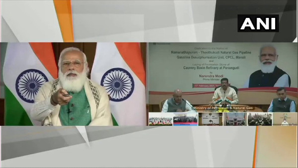 New Delhi, Feb 17: Prime Minister Narendra Modi on Wednesday laid the foundation of key projects of the oil and gas sector in Tamil Nadu through video conferencing.
