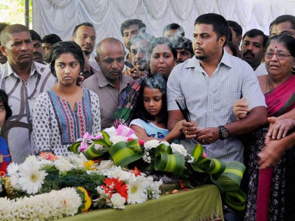 Meghana did not talk to anyone and stood by her mother's body looking closely at her mother's face. Relatives and family friends were in tears when when Meghana lit the incense sticks offered by her father.