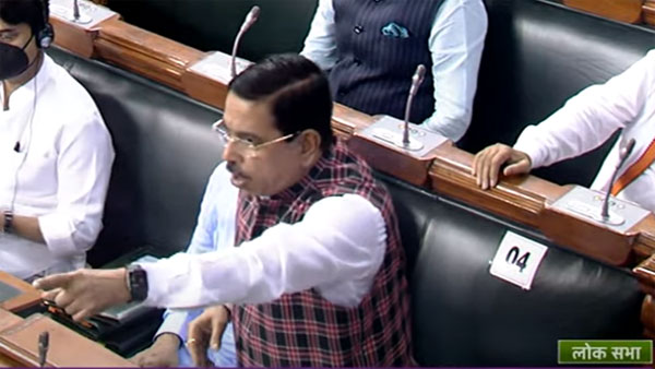 New Delhi, July 21: Union minister Pralhad Joshi on Thursday in Lok Sabha slammed the protesting Congress workers, asking whether Congress interim president Sonia Gandhi is above the law.