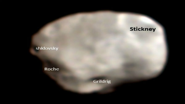 According to ISRO, "the violent phase that Phobos has encountered is seen in the large section gouged out from a past collision (Stickney crater) and bouncing ejecta." "Stickney, the largest crater on Phobos along with the other craters (Shklovsky, Roche & Grildrig) are also seen in this image," it said.