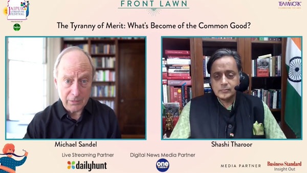 In today's session, Congress MP Shashi Tharoor was in conversation with Harvard University Professor Michael Sandel where the two spoke about his new book "The Tyranny of Merit: What's Become of the Common Good?" that shows the polarised politics of time reflecting the deep divide between winners and losers.