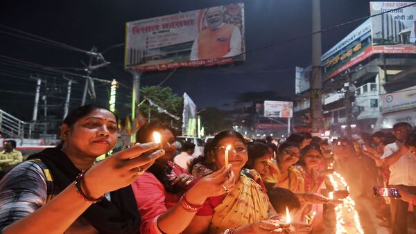 New Delhi, July 11: A festive mood enveloped in Deoghar, Jharkhand as people light thousands of diyas on eve of Prime Minister Narendra Modi's arrival to the city on Tuesday. Reportedly, more than 1 lakh diyas have been lighted in Deoghar with festivities observed as people await PM Modi's visit.