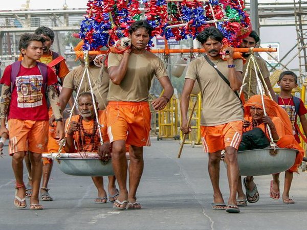 Hardiwar, Aug 7: In an extraordinary example of devotion towards, four brothers from Haryana's Palwal carried their parents on 'kanwar' from Hardiwar's Neelkanth to Panchkula's Mansa Devi. Now, they're on their way back.