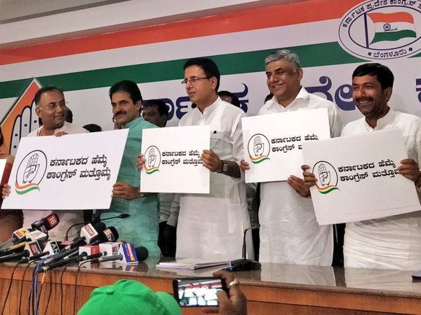 Karnataka Congress unveiled its Campaign Slogan and Logo at KPCC office in Bengaluru on the last of filing of nominations on Tuesday.
