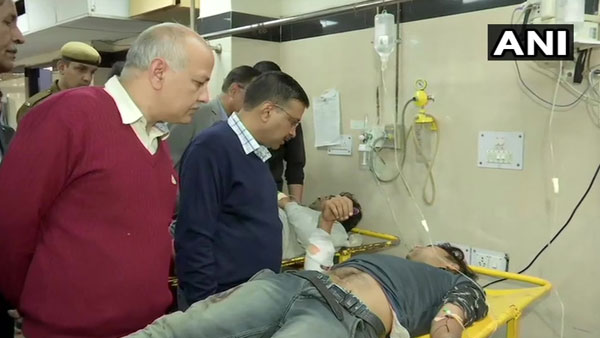 New Delhi, Feb 25: Delhi Chief Minister Arvind Kejriwal, deputy chief minister Manish Sisodia and Health Minister Satyendar Jain visited the GTB Hospital to meet those injured in the violence over the amended citizenship law in northeast Delhi.